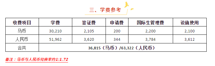 4.语言要求:雅思5.0或马来西亚大学测试MUET 3.5级(其他英语成绩可咨询项目老师)